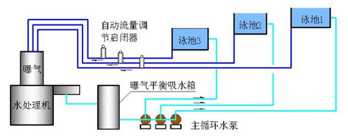 盡可能多地合并使用一套游泳池水處理設(shè)備,使造價(jià)成倍節(jié)省,運(yùn)營(yíng)費(fèi)大幅度下降,還使備池池水互相調(diào)劑。