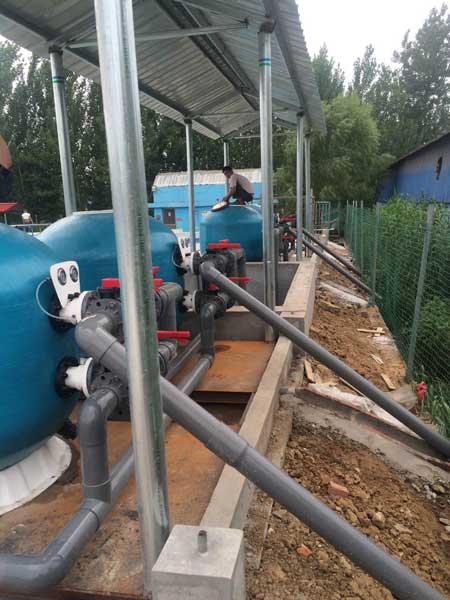 對(duì)于正常的游泳池溢流水,如要處理,就先進(jìn)行混凝處理,再經(jīng)過濾、游泳池循環(huán)水泵,然后再加藥消毒、最后進(jìn)入游泳池。主循環(huán)過濾罐的濾料一般采用石英砂,其壽命長,過濾效果好。
