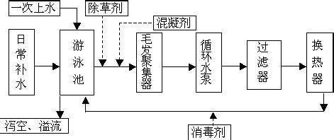為了滿足池水符合標(biāo)準(zhǔn)水質(zhì)要求及潔凈透明度,就要對由游泳者給池水造成的二次污染進(jìn)行連續(xù)不斷的循環(huán)過濾,其過濾原理是通過循環(huán)水泵將一定比例的池水抽出,投加適量的混凝劑(采用石英砂等顆粒過濾時),然后通過顆粒過濾器進(jìn)行過濾,再將過濾后的水經(jīng)過加熱、消毒環(huán)節(jié),最后送回游泳池使用,這便是池水過濾原理。(注意:游泳池池水的渾濁度較低,一般不超過10NTU。)