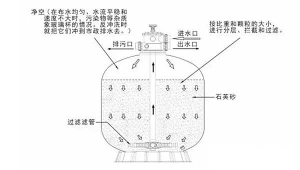石英砂過濾器的作用是通過過濾介質(zhì)把池水中的污染雜質(zhì)、膠狀或顆粒狀有機(jī)物進(jìn)行截留和吸附,把池水變得澄清透明,最后才進(jìn)入加熱殺毒的環(huán)節(jié),以達(dá)到水質(zhì)標(biāo)準(zhǔn)再生利用。