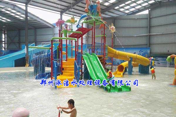 泳惠水上樂(lè)園地處風(fēng)景秀麗的古城浚縣縣城城東北部6公里處的黎陽(yáng)雙廟村,鄭州泳潔水處理設(shè)備有限公司于2017年4月承建浚縣泳惠室內(nèi)水上樂(lè)園,歷時(shí)3個(gè)月投入使用,總面積2500多平方,總體投資130多萬(wàn)。此項(xiàng)目包含的設(shè)備有:游泳池水處理設(shè)備、人工造浪設(shè)備、水上樂(lè)園設(shè)備、兒童戲水設(shè)備都由鄭州泳潔水處理設(shè)備有限公司提供設(shè)計(jì)及安裝。項(xiàng)目共分三個(gè)泳池:造浪池、游泳池,兒童池、泳池面積800多平方。兒童池水位有0.5米、游泳池和海浪池都有淺水區(qū)和深水區(qū),淺水區(qū)水位1.2米、深水區(qū)1.7米,人工造浪設(shè)備采用鼓風(fēng)造浪,浪高可達(dá)1.3米,水處理循環(huán)過(guò)濾設(shè)備及配件管道均采用國(guó)內(nèi)知名品牌。泳惠水上樂(lè)園水上游樂(lè)項(xiàng)目及水處理設(shè)備全部由鄭州泳潔水處理設(shè)備有限公司承建。