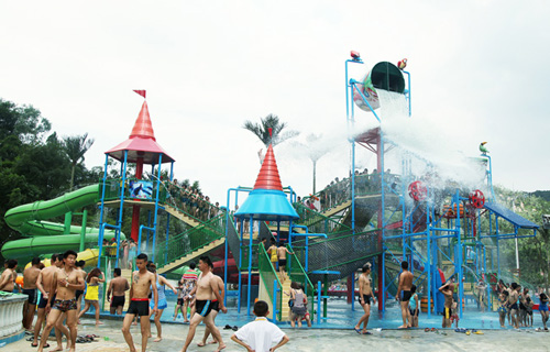 水寨以加勒比海盜為主題的大型互動(dòng)水上城堡,占地面積約1400平方米,高達(dá)14.5米,多項(xiàng)水上娛樂(lè)設(shè)施,兩個(gè)超級(jí)大翻桶。
