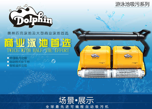 海豚2x2游泳池吸污機是以色列軍工轉民用產品代表,配電線防纏繞設備,配陀螺儀,標準直線行走,可爬墻清洗池壁及水線,近幾屆奧運會指定使用產品,全球市場份額40%。