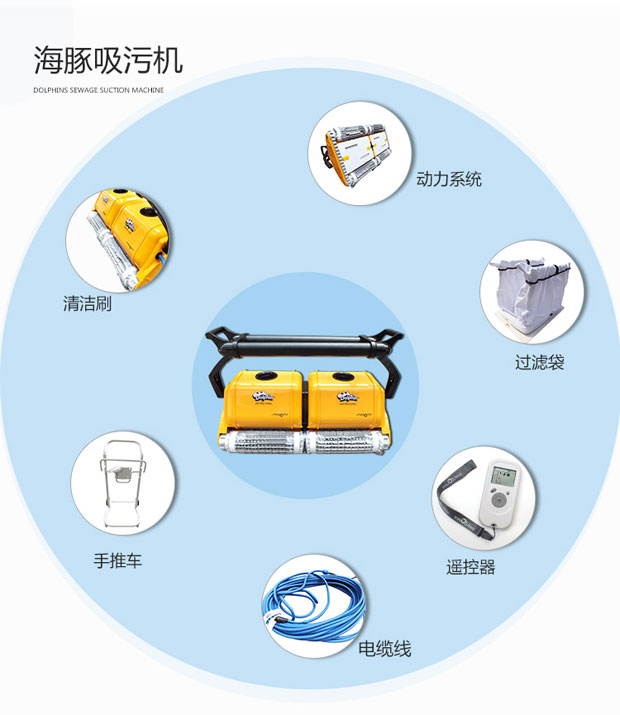 海豚2×2游泳池吸污機獨立操作,耗電量低,清掃、洗刷、過濾讓您的泳池清潔無后顧之憂,集新性能與改進性能于一體,可完成擦洗、清掃、真空吸附及過濾工作,使你的泳池清澈見底。