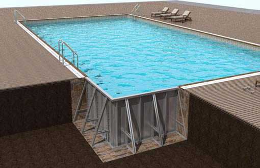 鋼結(jié)構(gòu)拆裝式游泳池是近年來(lái)新興的泳池形式,其特征在于具有底板和側(cè)板,底板為幾何造型的塊狀結(jié)構(gòu)拼裝在一起,接縫處設(shè)密封橡膠墊,側(cè)板采用側(cè)向支撐筋支撐固定。具有組裝快捷、便于移動(dòng)、省錢省時(shí)、使用安全、節(jié)能節(jié)水、造型美觀、便于安裝等特點(diǎn)。